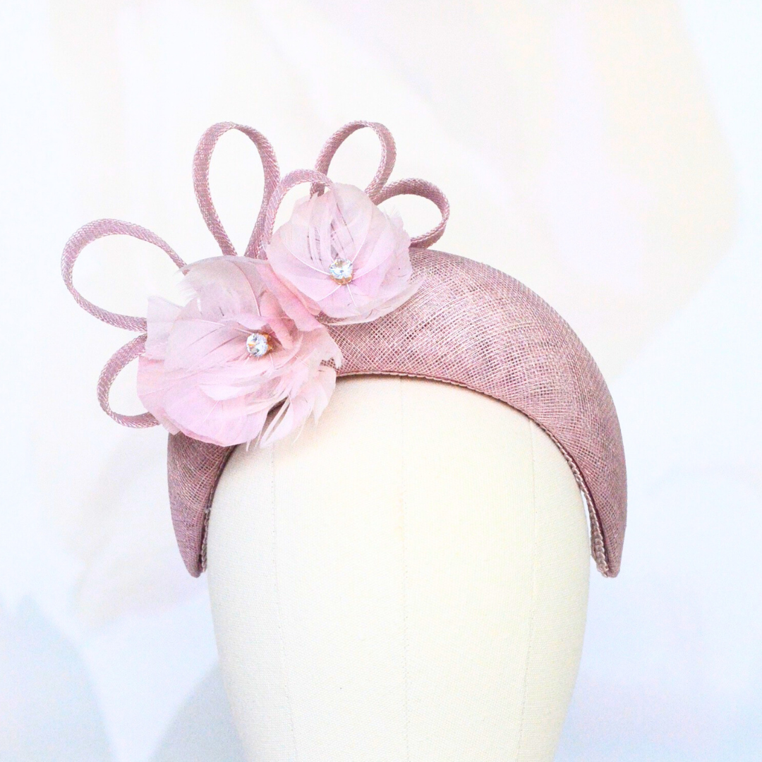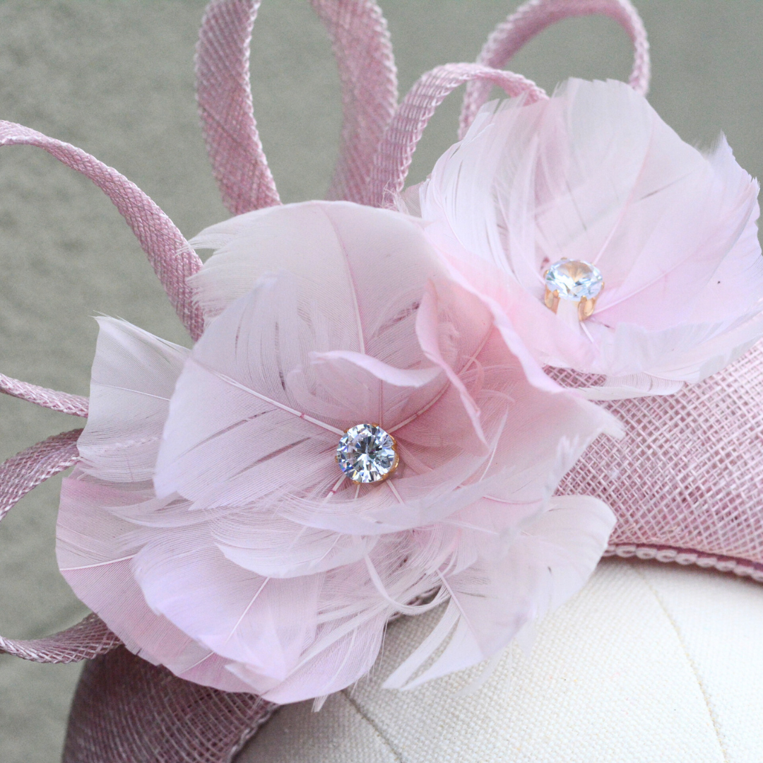 Lydia is a stunning halo headpiece, beautifully crafted with handmade feather flowers that add a touch of elegance and charm. Each flower is meticulously designed, featuring delicate diamante centres that catch the light and bring a subtle sparkle to the piece. The headpiece is further enhanced with a refined trim, making Lydia a sophisticated accessory perfect for any special occasion. Its graceful design and luxurious details make it a standout choice for those seeking to make a memorable impression.